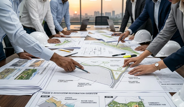 Responsible mining is not just about extraction; it is about restoration. Our Environmental Sustainability services focus on minimizing the ecological footprint of our operations. We adhere to strict Environmental Impact Assessment (EIA) guidelines and implement best practices in mine closure and reclamation. During active mining, we deploy dust suppression tankers and water sprinklers to control air pollution. We manage industrial effluent through settling tanks to ensure no contaminated water leaves the site. Post-mining, we engage in land reclamation—backfilling the pits and planting native species to restore the green cover. We also work on creating artificial lakes from exhausted pits, which serve as water reservoirs for local communities. Our commitment to sustainability ensures that we leave a positive legacy, transforming mines into green zones or agricultural land for future generations.
